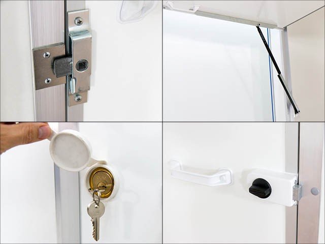- Verkaufsklappe rechts, mit Gasfederstützen und Zusatzsicherung